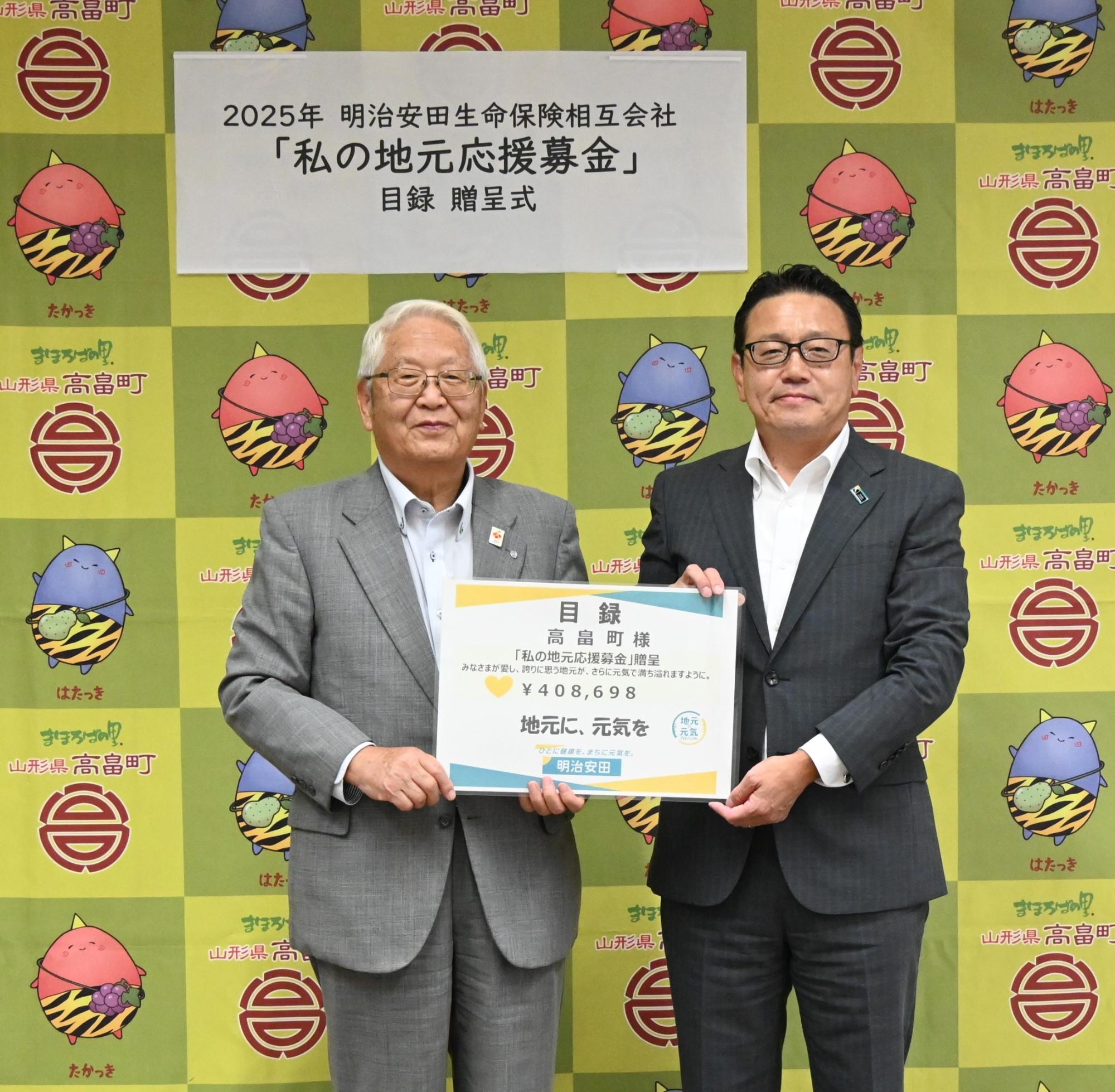 明治安田生命保険相互会社様から高畠町へ寄附をいただきました。