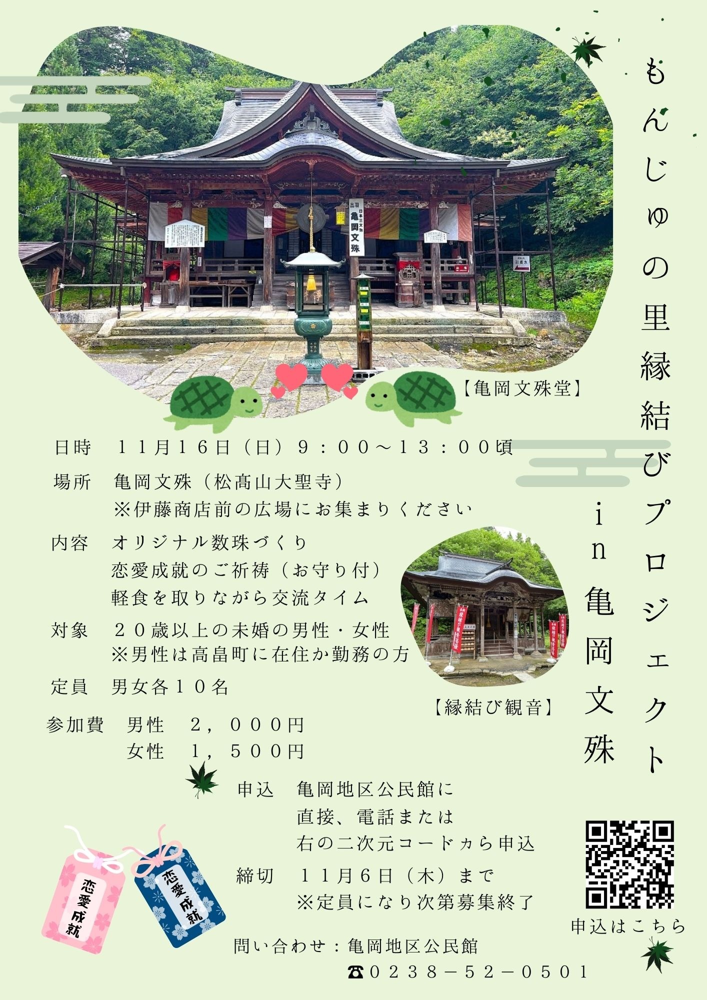 - お問合せ先:亀岡地区公民館 (電話番号)0238-52-0501